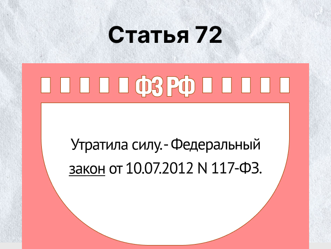Статья 72 признана недействительной. – На основании Федерального закона № 117-ФЗ от 10 июля 2012 года.
